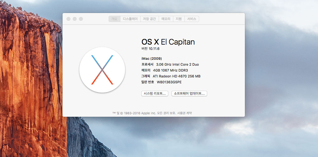시스템은 엘캐피탄 설치되어 있습니다