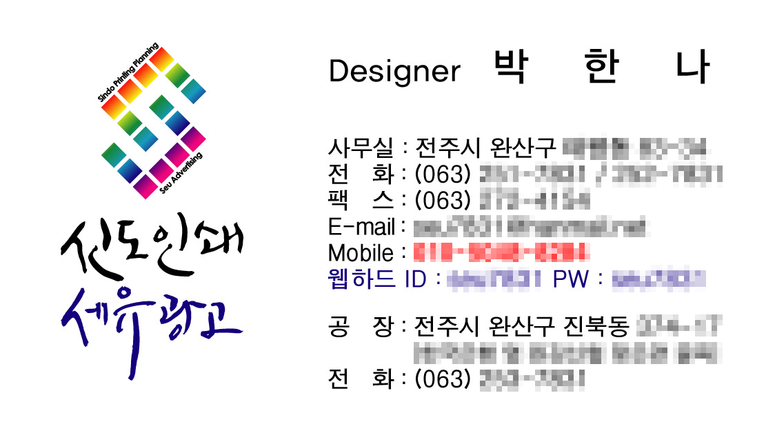작살님께서 올려주신 캘리로 작업한.. 온새미로 일반 1 8477 2009.12.16 11:08 작살님께서 올려주신 캘리로 작업한.. 저희 명함입니다. 이사하고 일하느라 명함밖에 작업을 못해서 이제야 올려드립니다. 다른것도 만약에 작업한다면 올릴께요 감사합니다. ^^